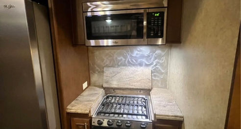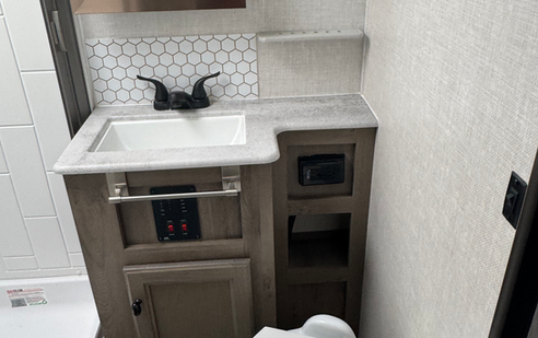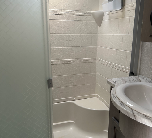 Includes two 400 watt solar panels lithium battery perfect for power outages or off grid camping 34ft in length sleeps 5-6 people and weighs 5250 dry weight